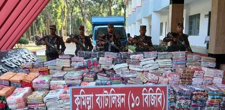 স্টাফ রিপোর্টার : কুমিল্লা জেলার সীমান্ত এলাকা হতে দেড় কোটি টাকা মূল্যের অবৈধ বিভিন্ন প্রকার ভারতীয় শাড়ি জব্দ করেছে বিজিবি।