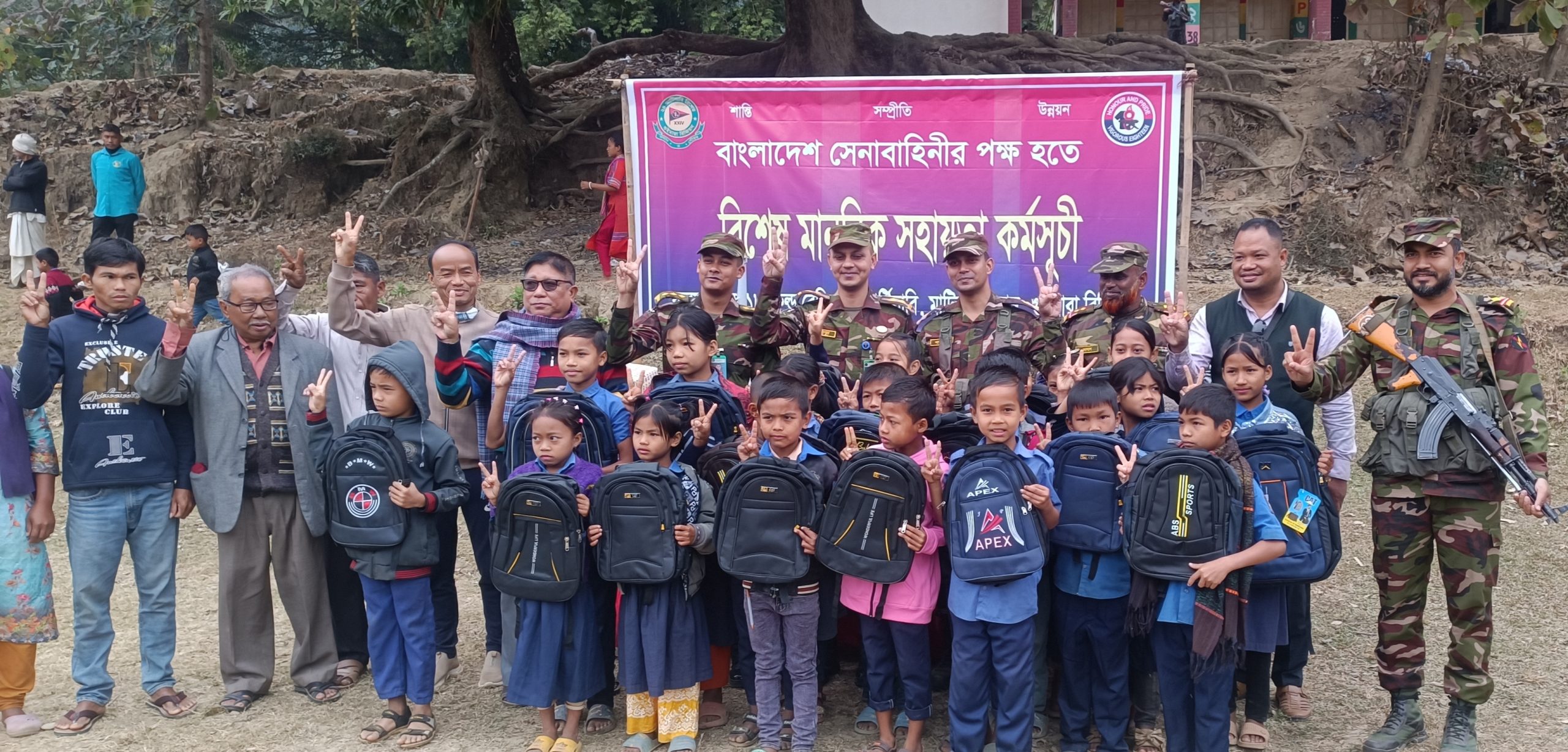 শুক্রবার (২৬ ডিসেম্বর) সকালের দিকে গুইমারা রিজিয়নের ১৮ ফিল্ড রেজিমেন্ট আর্টিলারি মাটিরাঙ্গা জোনের আওতাধীন সাপমারা সরকারি প্রাথমিক বিদ্যালয় মাঠে মানবিক সহায়তা হিসেবে শ্রী শ্রী লক্ষী নারায়ণ মন্দিরে একটি হারমোনিয়াম, রাধাকৃষ্ণ মন্দিরে এক সেট সাউন্ড সিস্টেম, সাপমারা সরকারি প্রাথমিক বিদ্যালয়ের শিক্ষার্থীদের মাঝে স্কুল ব্যাগসহ বিভিন্ন ক্রীড়া সামগ্রী,এলাকার কার্বারী ও ভিডিপি সদস্যদের মাঝে আর্থিক সহায়তা প্রদান, ও পঞ্চাশ টি অসহায় দুস্থ পরিবারের মাঝে শীতবস্ত্র কম্বল বিতরণ করেন মাটিরাঙ্গা জোন অধিনায়ক লেফটেন্যান্ট কর্নেল মাসুদ খান পিএসসি।