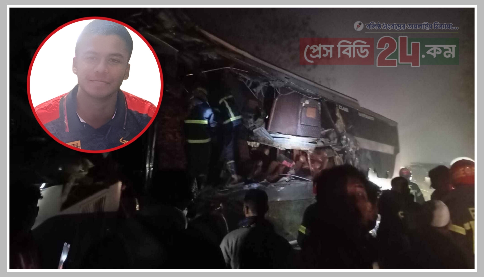 এসময় একই লেনে আসা সেন্টমার্টিন পরিবহনের ডাবল টেকারের বাসটি (ঢাকা মেট্রো-ব-১২-২৮৮১) নিয়ন্ত্রণ হারিয়ে সামনে দাঁড়িয়ে থাকা গাছ বোঝাই ট্রাকের পেছনে ধাক্কা দেয়।