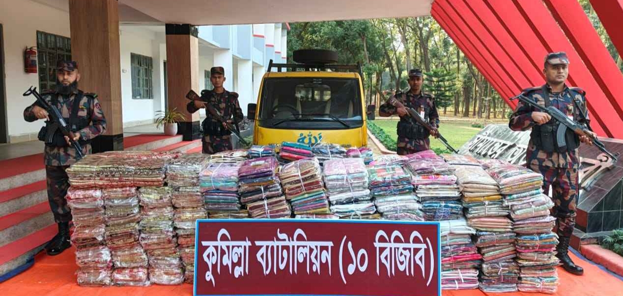 স্টাফ রিপোর্টার : কুমিল্লা সীমান্ত দিয়ে অবৈধভাবে আনা বিপুল পরিমাণ ভারতীয় শাড়ি, থ্রি-পিস ও আতশবাজিসহ একটি মিনি পিকআপ জব্দ করেছে বর্ডার গার্ড বাংলাদেশ (বিজিবি)।