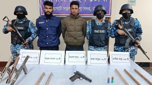 চেকপোস্টে তল্লাশি,পালানোর সময় আটক ২, গুলি ও পিস্তল উদ্ধার!