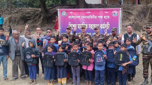 মাটিরাঙ্গার দূর্গম অঞ্চলে সেনাবাহিনীর মানবিক সহায়তা প্রদান
