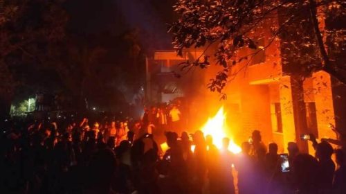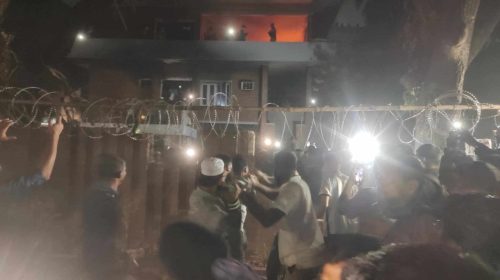 ব্যাপক ভাঙচুর চালানোর পর ধানমন্ডি ৩২ নম্বর বাড়িতে আগুন