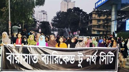 রাজধানীর মহাখালীতে তিতুমীর কলেজ শিক্ষার্থীদের সড়ক অবরোধ, যান চলাচল বন্ধ