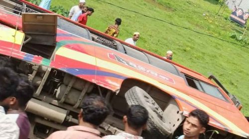 হবিগঞ্জ যাত্রীবাহী বাস উল্টে ৩০ যাত্রী আহত