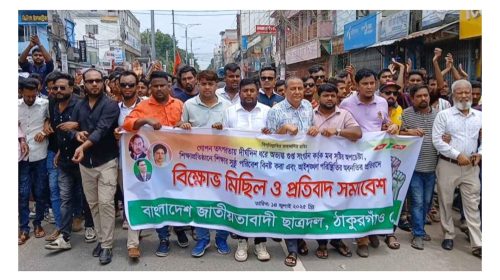 স্টাফ রিপোর্টার : শিক্ষার পরিবেশ ভঙ্গের চেষ্টা এবং মোব সৃষ্টির অপচেষ্টার প্রতিবাদে ঠাকুরগাঁওয়ে বিক্ষোভ মিছিল করেছে জেলা জাতীয়তাবাদী ছাত্রদল। একই সঙ্গে তারা সার্বিক আইনশৃঙ্খলা পরিস্থিতির অবনতির বিরোধিতা করেছেন। সোমবার (১৪…