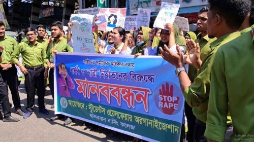 ২৪ ঘণ্টার মধ্যে ধর্ষণকারীদের বিচারের দাবিতে মানববন্ধন করেছে স্টুডেন্ট ওয়েলফেয়ার অর্গানাইজেশনের বান্দরবান নার্সিং কলেজের শিক্ষার্থীরা। সোমবার (১০ মার্চ) দুপুরে বান্দরবান প্রেসক্লাবের প্রাঙ্গণে স্টুডেন্ট ওয়েলফেয়ার অর্গানাইজেশনের আয়োজনে ধর্ষণ ও নারী নির্যাতনের…