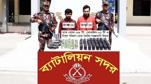 কক্সবাজারের টেকনাফ থেকে ৬৯টি বোমা ও বোমা তৈরির সরঞ্জামাদিসহ ২ জনকে গ্রেপ্তার করেছে বর্ডার গার্ড বাংলাদেশ (বিজিবি)। রবিবার ভোররাতে হ্নীলা সীমান্তবর্তী একটি বাড়িতে অভিযান চালিয়ে এসব বোমা উদ্ধার করা হয়।…