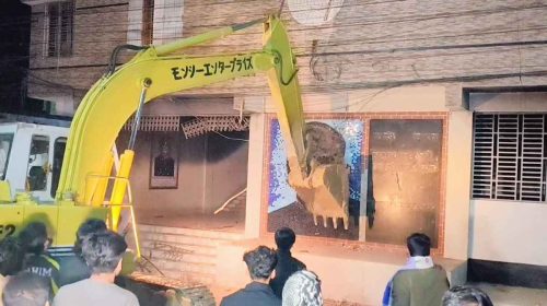 যশোরে নির্মিত দেশের সর্ববৃহৎ বঙ্গবন্ধু স্মৃতি ম্যুরাল এস্কেভেটর দিয়ে ভেঙে দিয়েছে বিক্ষুব্ধ ছাত্র-জনতা। বৃহস্পতিবার (৬ ফেব্রুয়ারি) বিকেল ৪টা থেকে সন্ধ্যা পর্যন্ত হাতুড়ি, শাবল ও একটি এস্কেভেটর দিয়ে শহরের বকুলতলা মোড়ে…