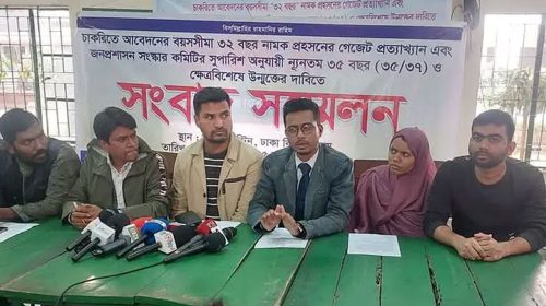 সরকারি চাকরিতে আবেদনের বয়সসীমা ন্যূনতম ৩৫ ও ক্ষেত্রবিশেষে উন্মুক্ত করার দাবিতে আগামী সোমবার (২০ জানুয়ারি) সকাল ১০টায় রাজধানীর শাহবাগে সমাবেশ করার ঘোষণা দিয়েছেন ৩৫ প্রত্যাশীরা। গতকাল বৃহস্পতিবার ঢাকা বিশ্ববিদ্যালয়ের মধুর…