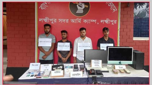 স্টাফ রিপোর্টার : লক্ষ্মীপুরে অভিযান চালিয়ে বিকাশ ও নগদ প্রতারণ চক্রের ৪সদস্যকে আটক করেছে সেনাবাহিনী। সোমবার (২২ সেপ্টেম্বর) সকালে বিষয়টি নিশ্চিত করেন সেনাবাহিনীর ক্যাম্প কমান্ডার ক্যাপ্টেন মো. রাহাত খান। এর…