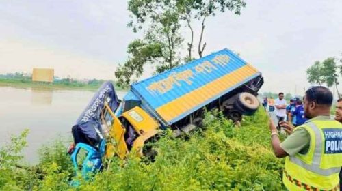 কুমিল্লায় সড়ক দুর্ঘটনায় পুলিশ ভ্যানসহ খাদে ৪ গাড়ি