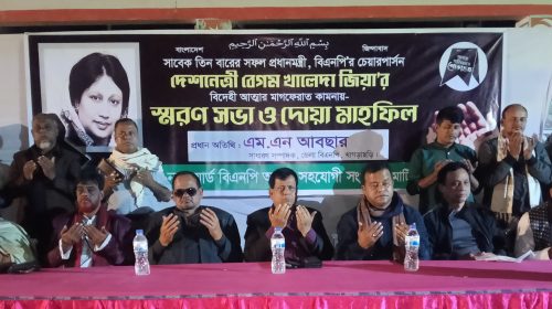 মাটিরাঙ্গায় বেগম খালেদা জিয়া’র আত্মার মাগফেরাত কামনায় দোয়া মাহফিল